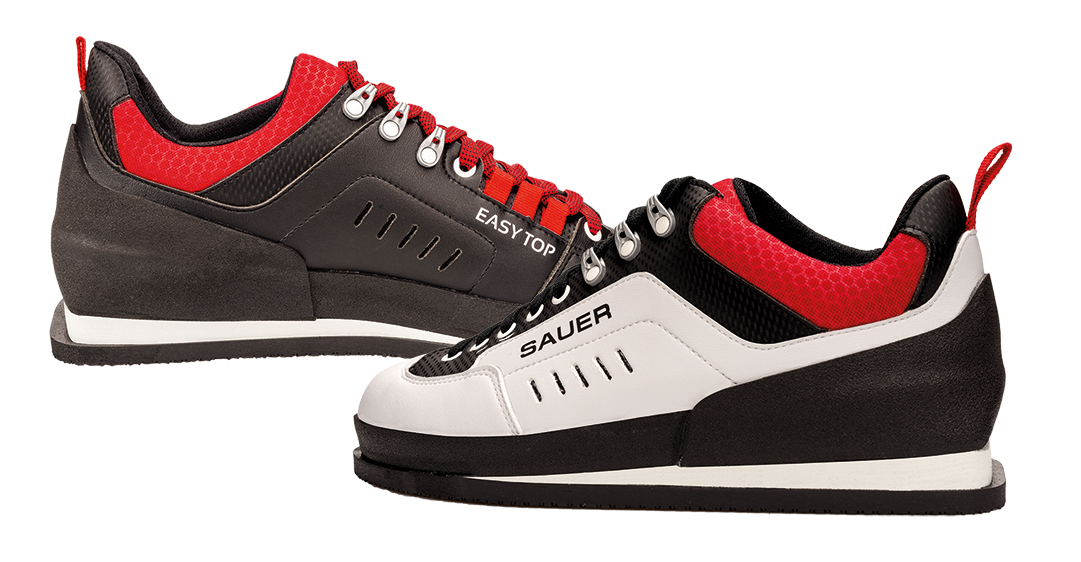 The EASY TOP sports shoe from Sauer is a further developed version of the well-tried forerunner model Easy Style Flex. Besides the fundamentally new look, the EASY TOP comes with several new design features: The four-unit extension of the lacing allows an even better fixation of the foot inside the shoe, as well as optimized ground contact for the shooter. An important innovation is the integrated tongue solution that encloses the arch of the foot completely. Instead of a classic shoe tongue that is sewed in separately, the inside half of the inner shoe is extended in such a way that it reaches beneath the outer half and covers the arch of the foot all the way to the toes. Its well-developed padding prevents pressure points from developing. The enhanced footbed of the EASY TOP satisfies sport orthopaedic requirements. The raised heel area provides relief for the back during prolonged periods of standing and combats premature fatigue. Like the forerunner model, EASY TOP has a cast inward curving PTU sole to provide maximum stability by making contact over the whole surface. The rubber surround as stabilizing feature and protection from stretching was also retained. In accordance with ISSF requirements, the ankle area was kept free. The area below the ankle is well-padded all around.
